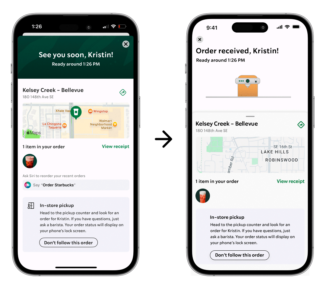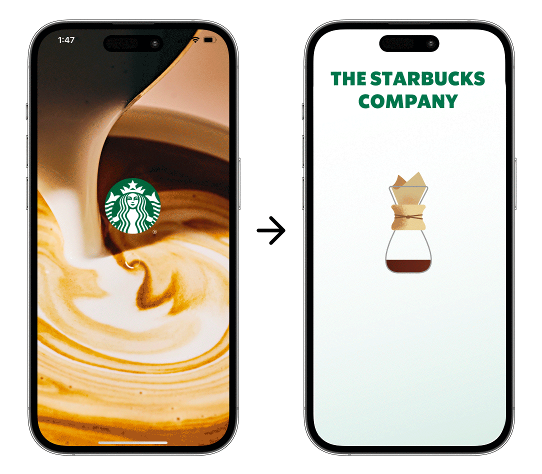 Starbucks has always prioritized customer experience, as evidenced by the warm greeting and the writing on the cup, but its mobile app felt static and purely transactional. By introducing motion, I infused the mobile experience with the brand’s personality. Using the order-to-purchase flow, I designed motion cues that guide attention, reduce friction, and encourage each step toward purchase.